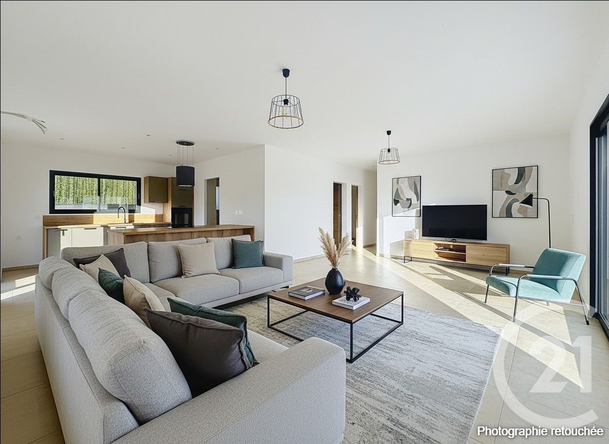 L'espace de vie, spacieux, s'ouvre sur une terrasse ensoleillée offrant un agréable prolongement extérieur.